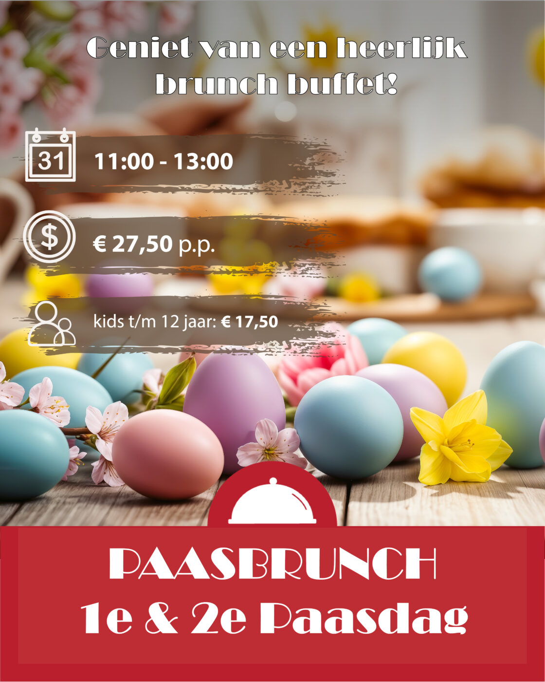 - De Paasbrunch vindt plaats op 1e Paasdag en 2e Paasdag.